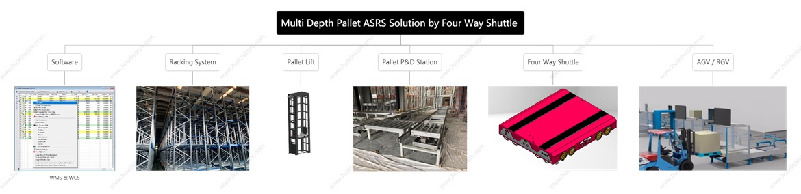 Xe đưa đón pallet 4 chiều là một loại giải pháp lưu trữ tự động mật độ cao sử dụng vệ tinh di động hoặc "xe đưa đón" để di chuyển pallet sản phẩm theo chiều ngang xuống các hàng hệ thống giá đỡ.