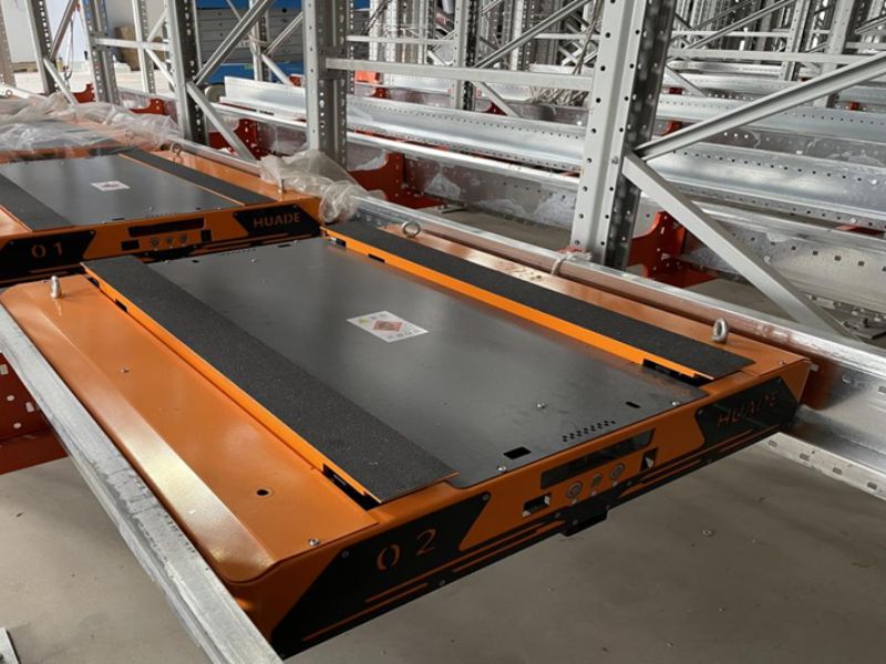 Hệ thống kệ pallet con thoi bốn hướng này phá vỡ giới hạn một lối đi, một thiết bị của cần cẩu xếp chồng. Bằng cách điều chỉnh linh hoạt số lượng con thoi để phù hợp với lưu lượng vận hành, hệ thống này tránh được tình trạng thiết bị nhàn rỗi. Hệ thống cũng loại bỏ rủi ro về độ phức tạp về cấu trúc và độ ổn định của hệ thống cha-con.